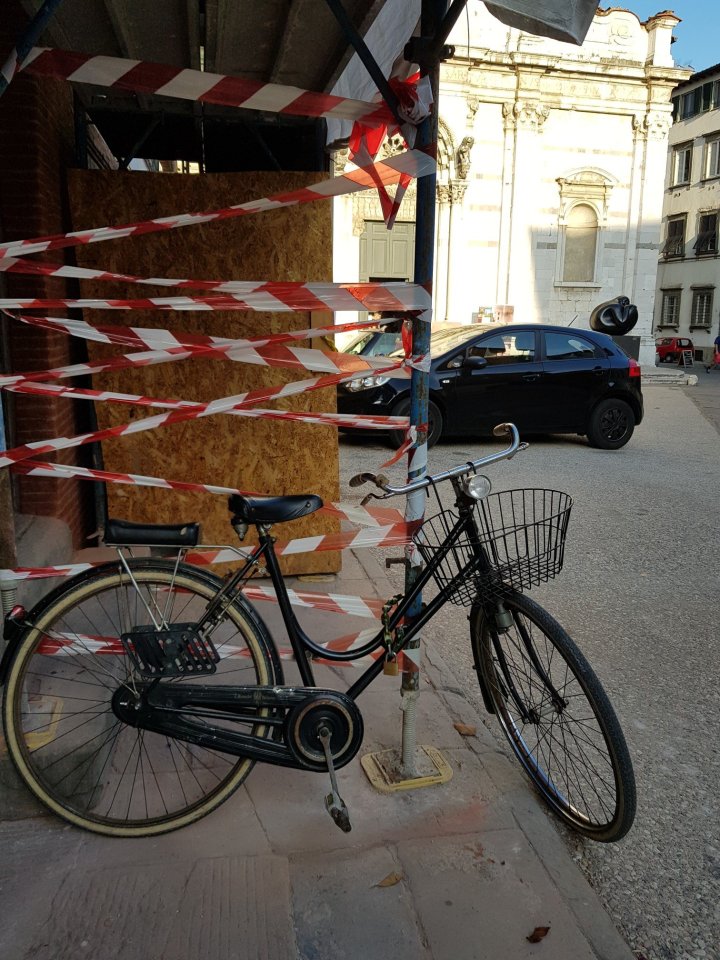 I hired a bike and rode around the top of the walls twice, as it only took 20 minutes. Then I rode around the narrow streets inside the walls, stopping to have a look at some many cathedrals and Lucca Biennale artworks made mostly from paper.