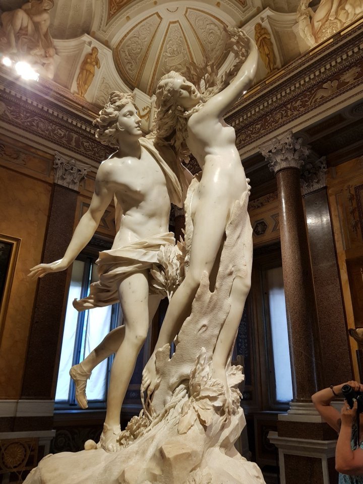 Bernini’s skill and precision, capturing movement in stone, and his ability to delicately carve perfect hands and fingers from the marble is breathtaking. My favourite was Apollo and Daphne, which depicts her transformation into a tree at the hands of her father in order to escape Apollo. Her fingertips becoming leaves and her toenails turning into roots is incredible!